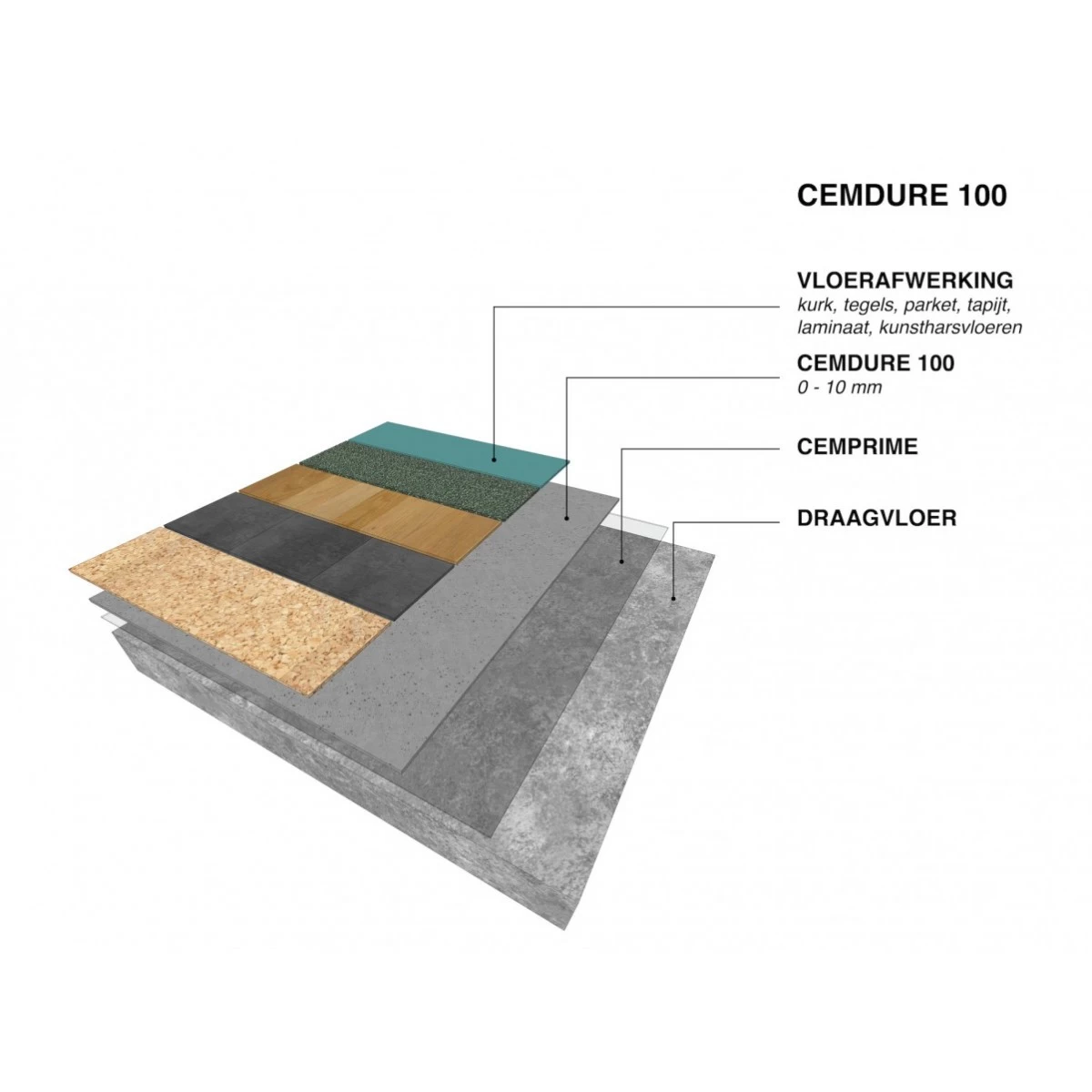 CEMDURE FINE is een zelfnivellerend cementgebonden egalisatiemateriaal uit hoogwaardig aluminiumcement. Het is een voorgemengd droog poeder ontworpen voor de bevloering van woningen. Na toevoeging van water kan CEMDURE FINE zowel manueel als met een automatisch continue mengpomp (zonder wachtkamer) aangebracht worden.