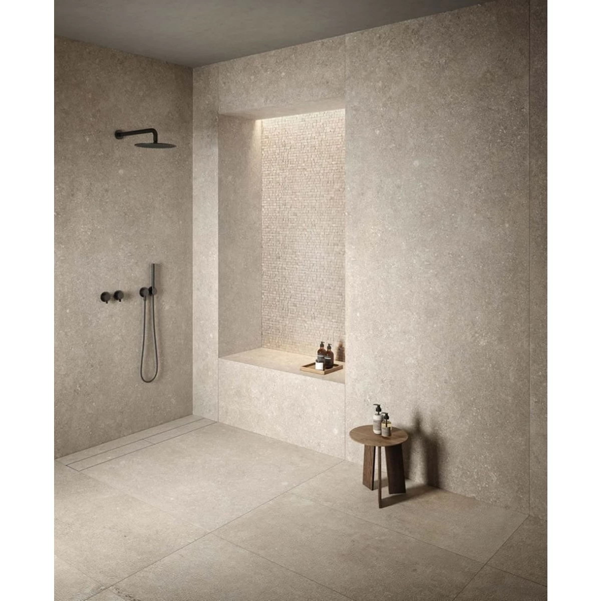 Kronos Le Reverse Antique Dune is een beige volkeramische natuursteenlook tegel met gerectificeerde kanten.
