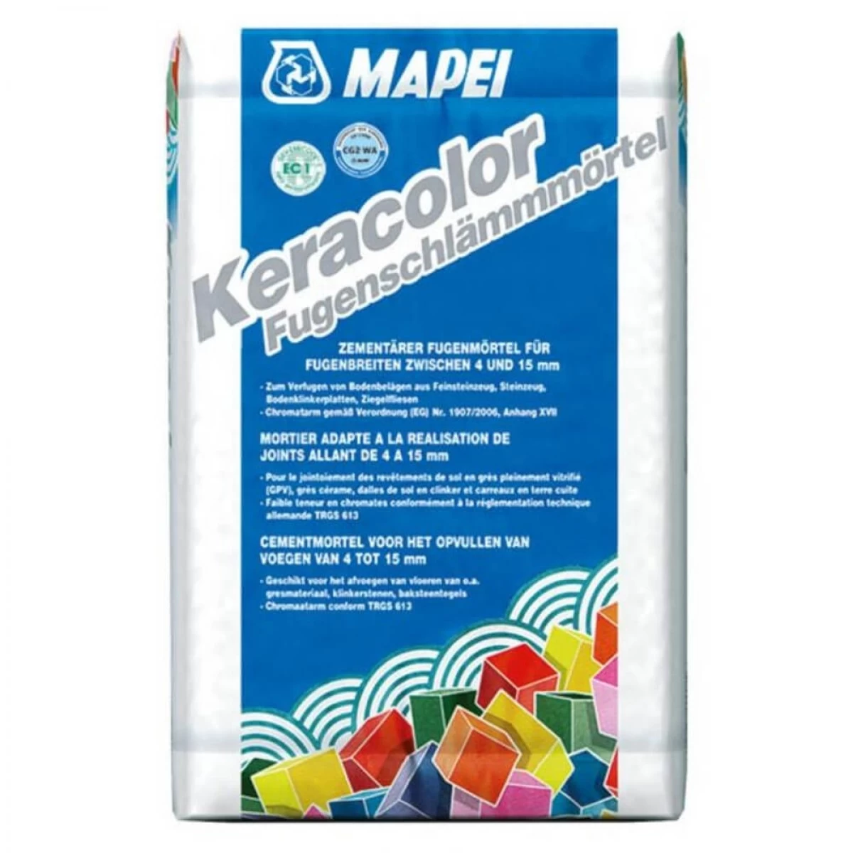 Mapei Keracolor Fugenschlämmörtel (grijs) voor voegen van 4 tot 15mm is een voegmortel op cementbasis voor binnen en buitenshuis vloeren maar wordt meestal gebruikt bij het invoegen van terrastegels.