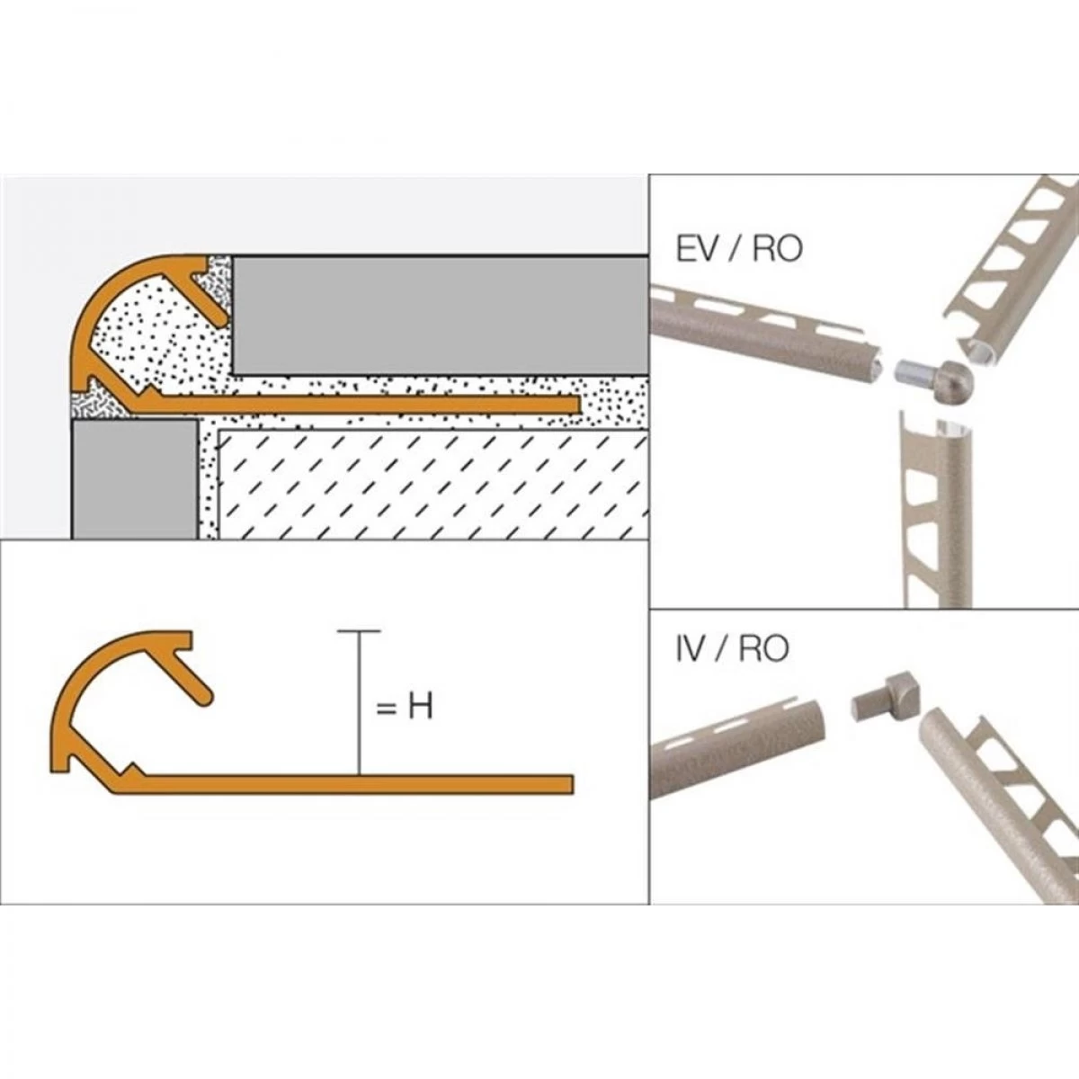 Schlüter Rondec is een symmetrisch afgerond profiel met voegribje voor uitwendige hoeken in wandbetegeling en bekledingsafsluitingen bestaande uit aluminium met een structuurcoating.
