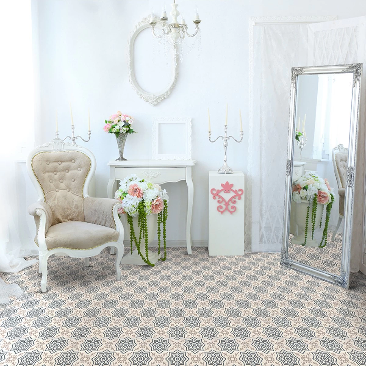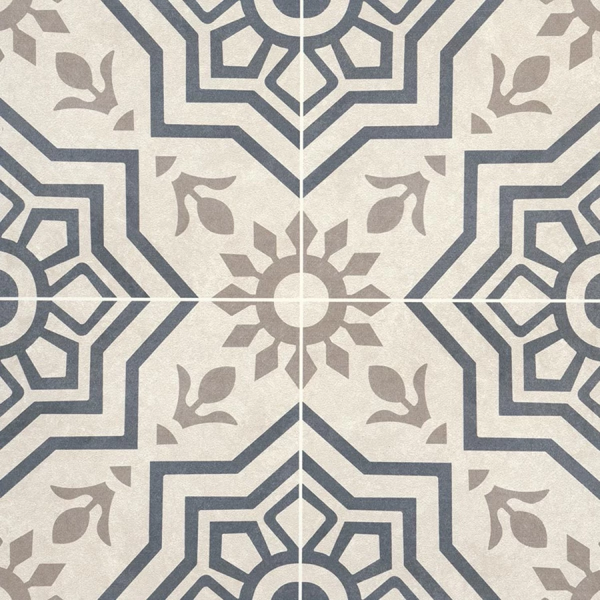 Tegel “Tifanny Blue” van Bien is een imitatie cementtegel, geschikt voor wand- en vloerbekleding.