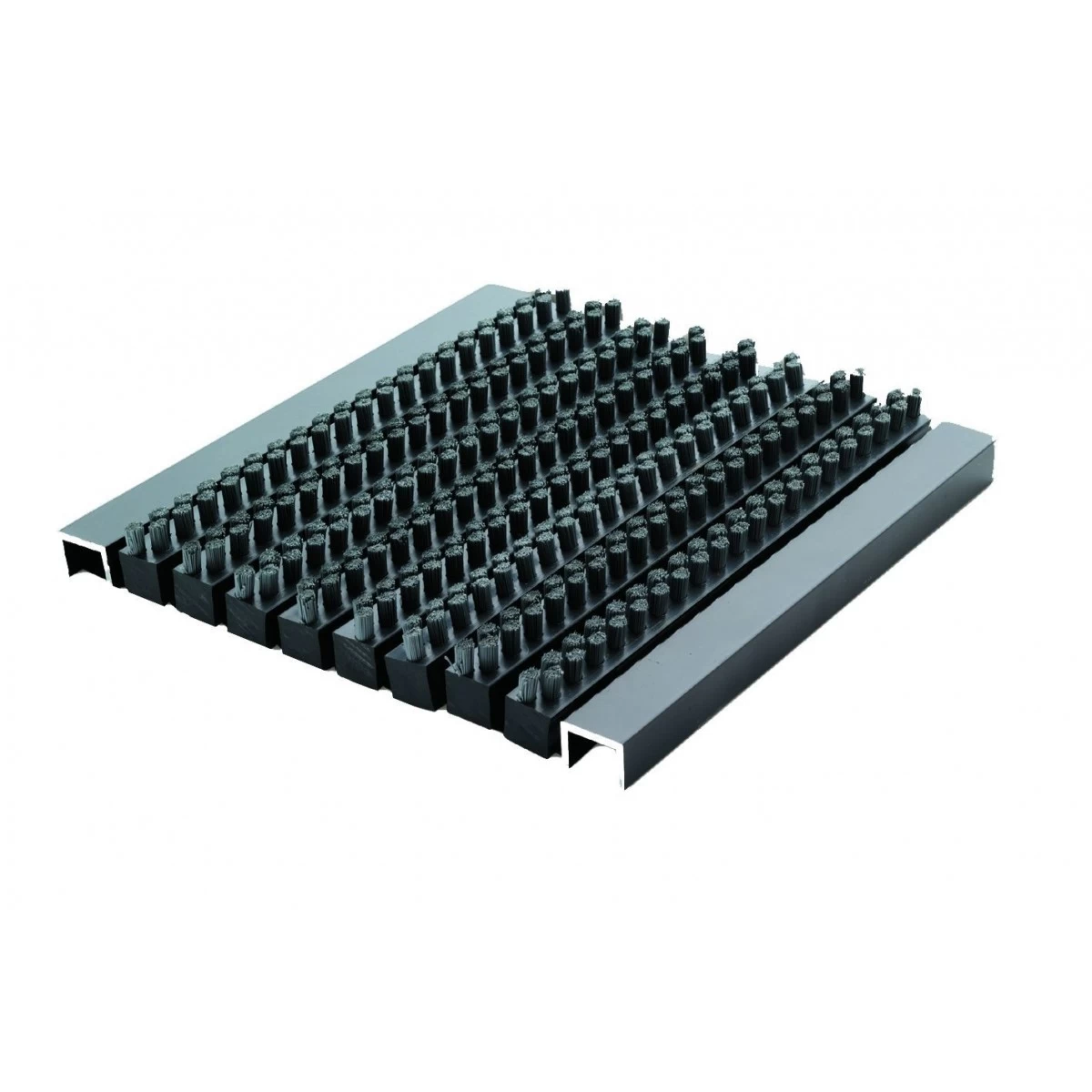 Econobros is een opbouw oprolbare borstelschraapmat (met geschrankte borstels) voor buiten die grof vuil zoals zand, gravel en andere van de schoenen reinigt.